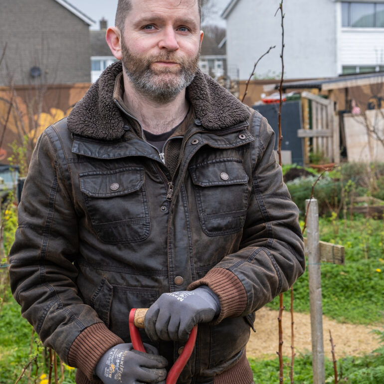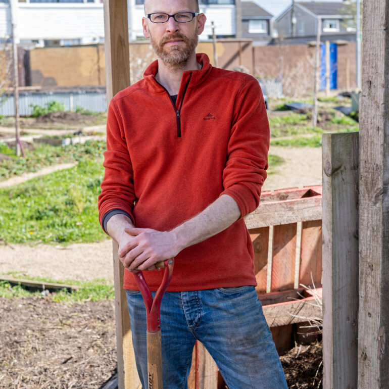 The Orchard of People project started with weekly visits with my camera, to a local community garden. The Garden came about from the concern of a group of likeminded neighbours who wanted to make use of a communal space hidden away between the houses and laneways in Bayside, on Dublin’s northside. It was in its 4th year when I began my work.