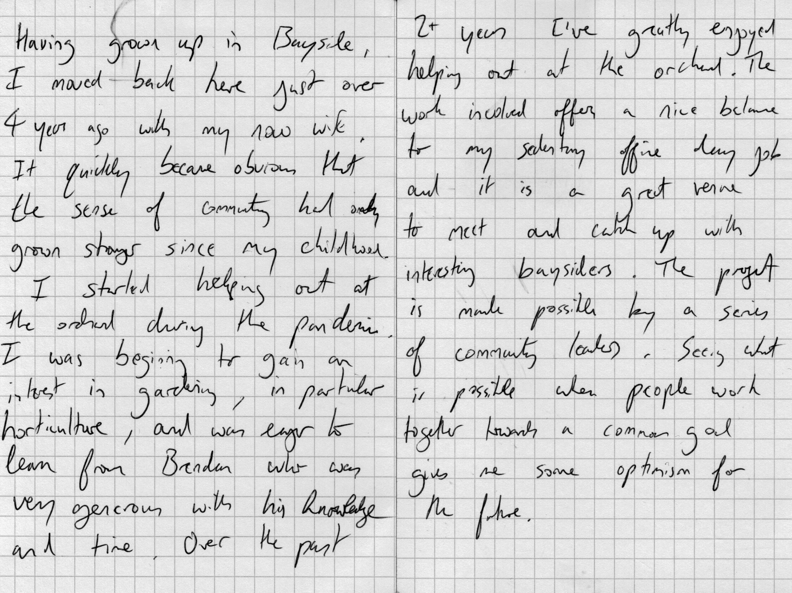 ‘We are all of a similar mindset in the Orchard of People who choose to engage with life and community’ – Brendan.