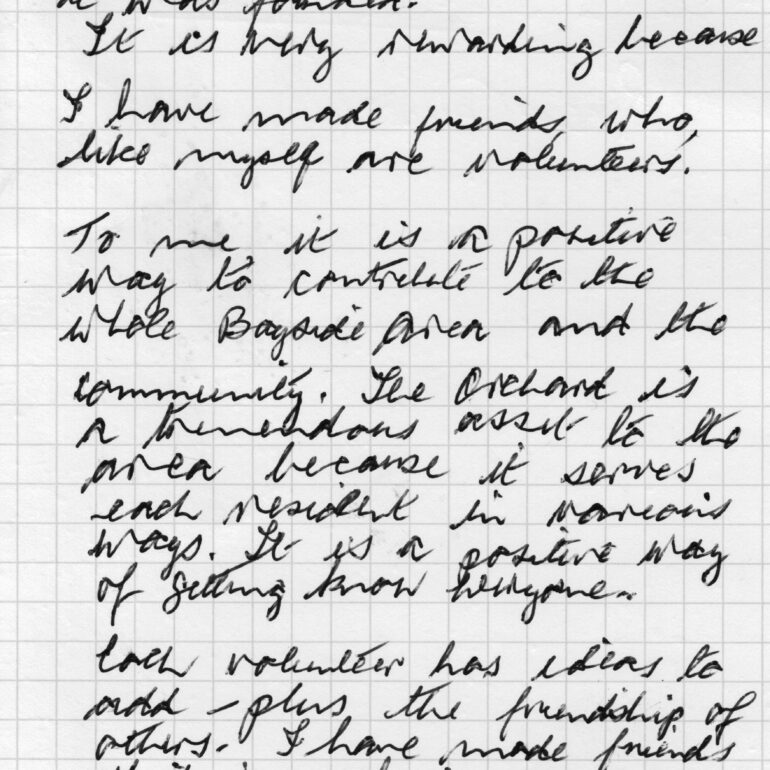 My lens began to capture the character of the place. I took photographs of a gathering of people laughing, working, and getting their hands dirty, the oasis of green, The Orchard of People came alive through my lens.
